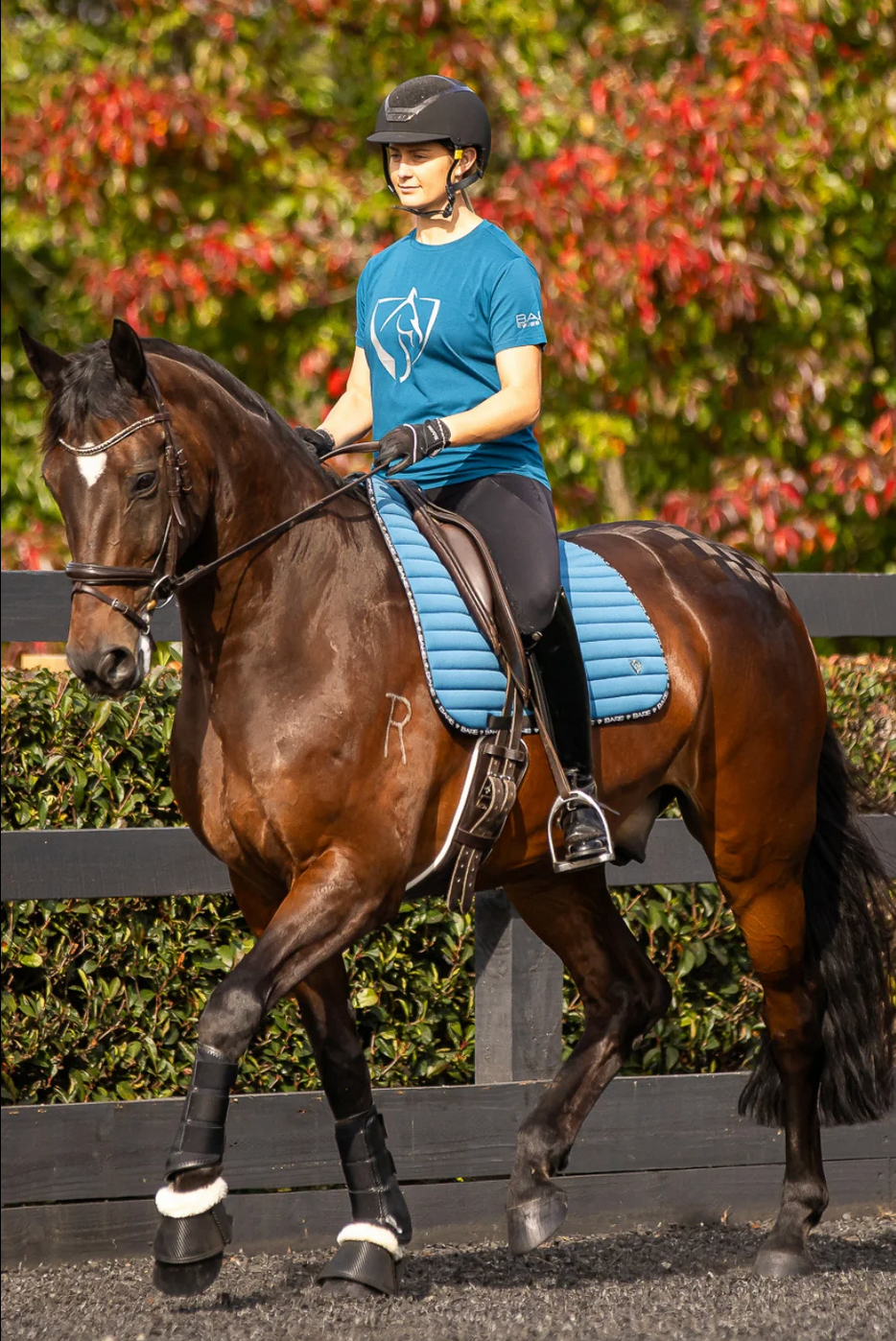 Metallic silver BARE horse head logo on the front and ‘BARE Equestrian’ printed on the sleeve for a subtle touch of bling