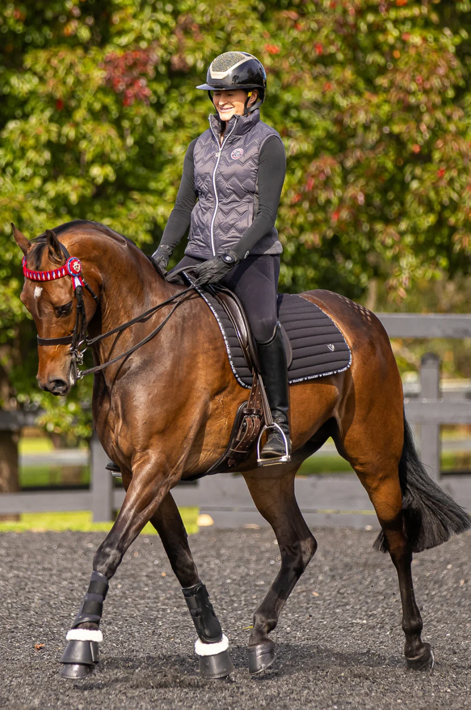 The elegant zigzag quilting, contrast zip, and self-standing collar add a feminine touch to your equestrian wardrobe, ensuring you look as great as you feel.