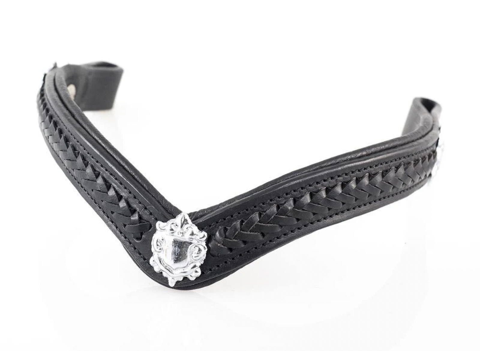The monocrown headpiece is ergonomically cut back behind the ears to relieve pressure on sensitive poll and ear areas, while dual buckle adjustments on both sides of the poll allow for even fitting and a clean, balanced appearance.