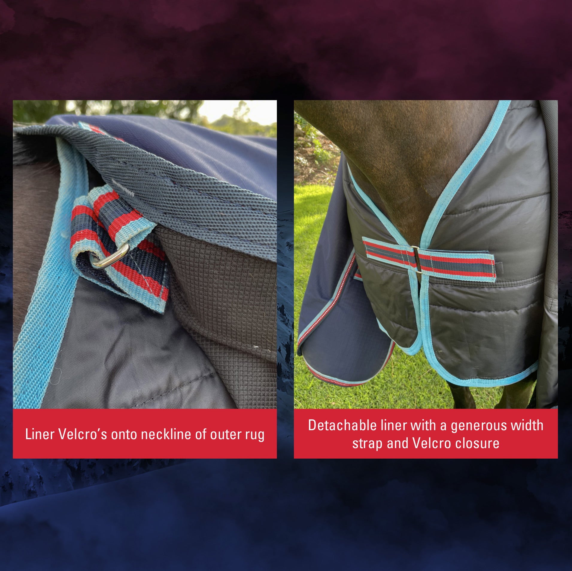 The NEW Defender X is made from a 1200 denier polyester ripstop outer that is highly waterproof and breathable (3000/3000). This rug comes supplied with a detachable liner in 300GM fill.