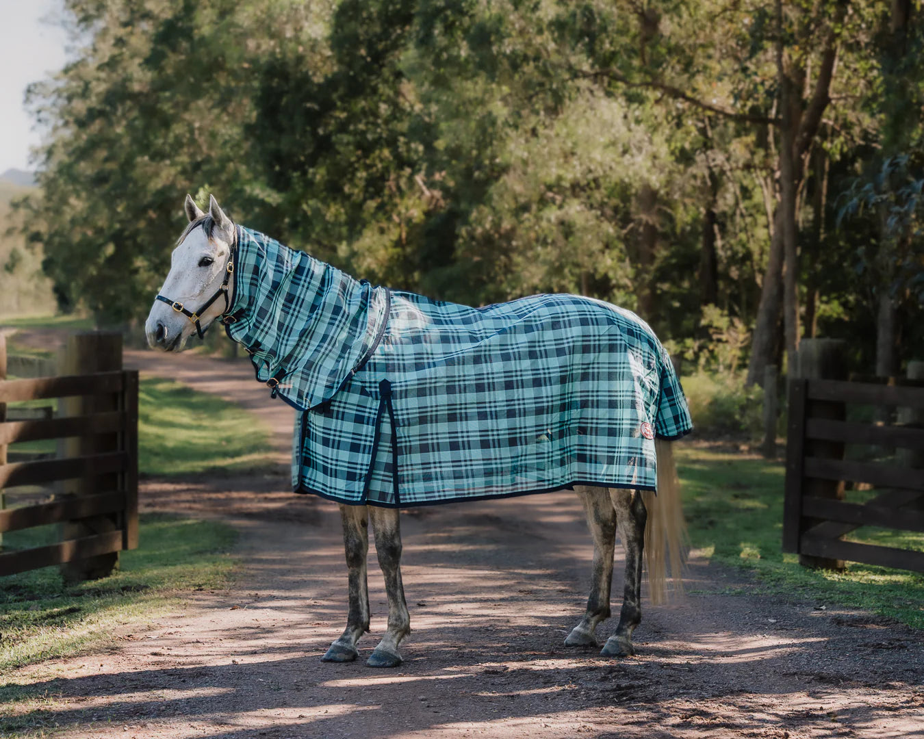 Featuring a stylish turquoise and navy design, it’s as smart as it is functional — ideal for paddock use or warm-weather turnout.