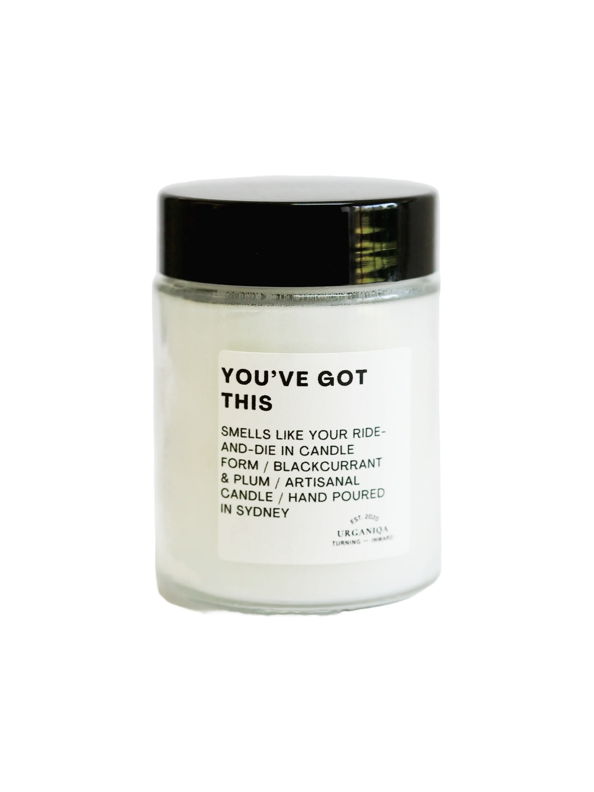 Bold, fruity, and full of confidence—this blackcurrant and plum-scented candle is your personal cheerleader in a jar. It’s that burst of energy you need when you're facing the day with determination and a whole lot of grit. Whether it’s a big presentation or just tackling your to-do list, You’ve Got This is here to remind you that you've already got everything you need to crush it.